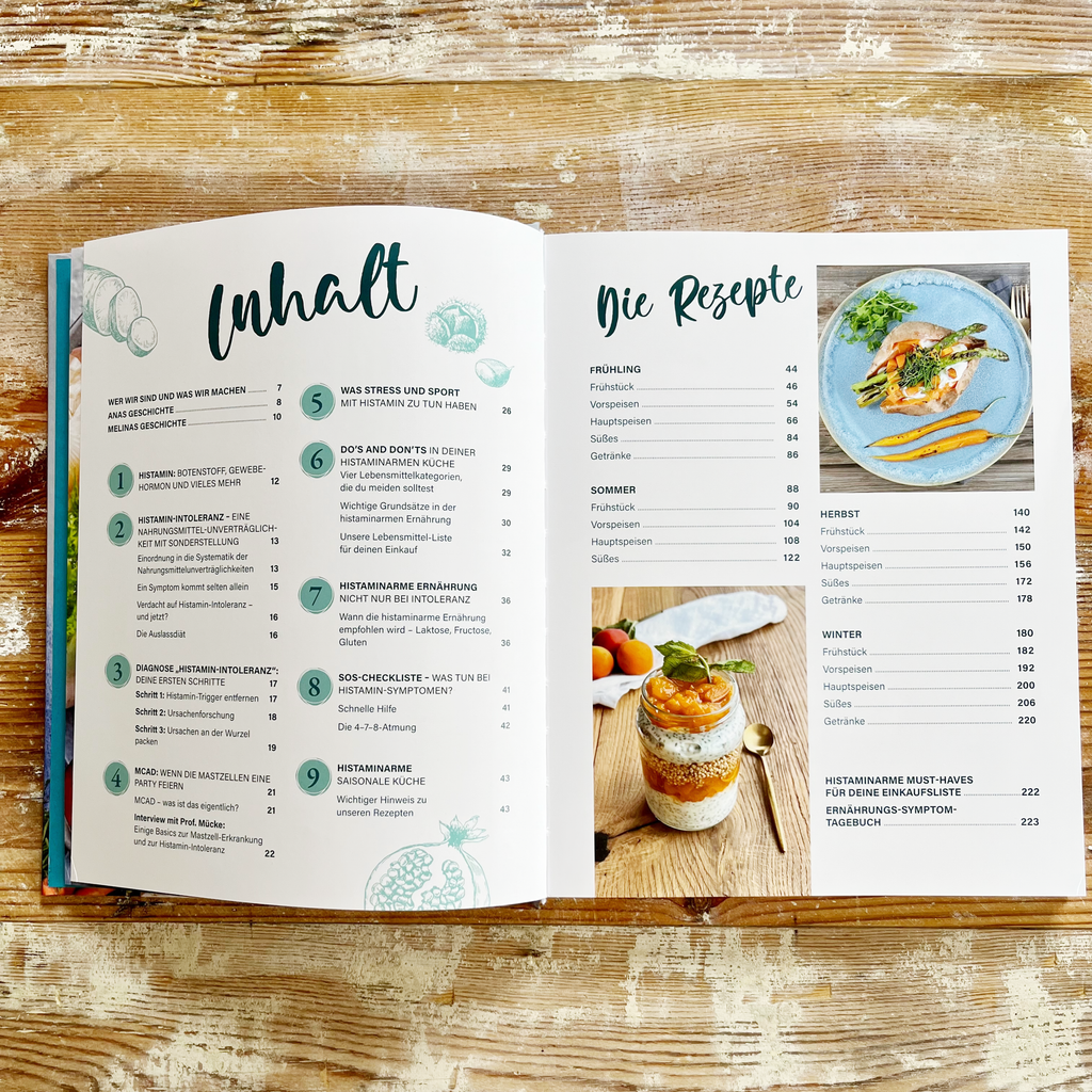 - Über 80 saisonale Rezepte aus der histaminarmem Küche und Alternativen für andere Unverträglichkeiten wie Gluten, Laktose oder Fructose.