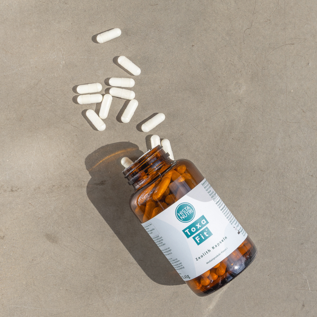 ToxaFit: Mikronisierter Zeolith, Natriumhydrogencarbonat, Wasser, Reisextrakt, HPMC Hydrocpropymethylcellulose (pflanzliche Kapselhülle)