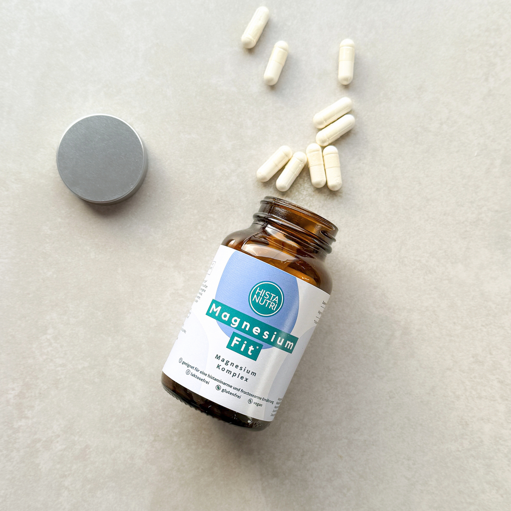 Unser MagnesiumFit kannst du auch mit Unverträglichkeiten einnehmen: Es ist laborgeprüft glutenfrei, laktosefrei und für eine histaminarme sowie fructosearme Ernährung geeignet.
